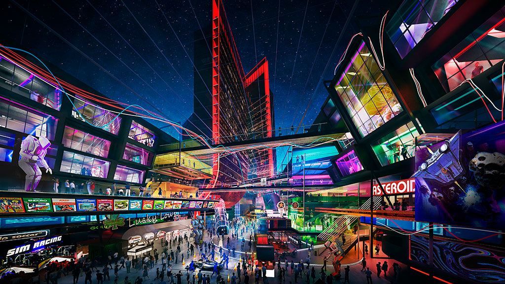 라스베이거스에서 10년 만에 처음으로 선보이는 새로운 메가 리조트인 리조트 월드는 스마트 럭셔리에 초점을 맞추고 있습니다. 투숙객은 현금 없는 게임 기술, 스마트폰을 통한 키리스 객실 출입, 심지어 AI 기반 서비스 로봇까지 이용할 수 있습니다. 거대한 LED 디스플레이와 몰입감 넘치는 디지털 아트로 초현대적인 느낌을 줍니다.